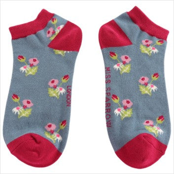 Mini floral trainer socks - denim