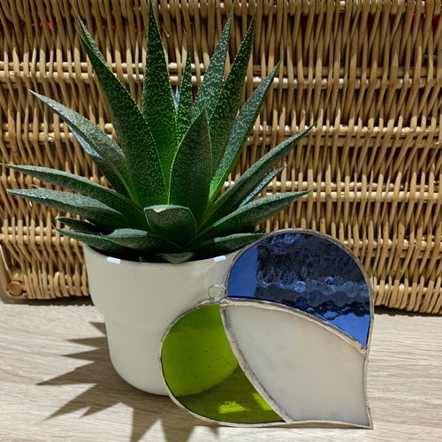 Handmade print - small oak frame - medium blue hearts in heart shape