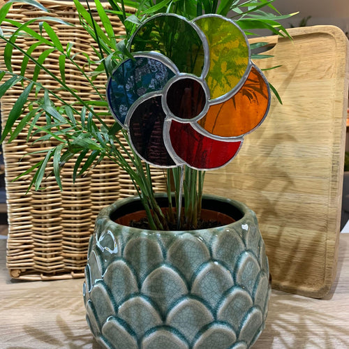 Handmade print - small oak frame - medium multi coloured hearts in heart