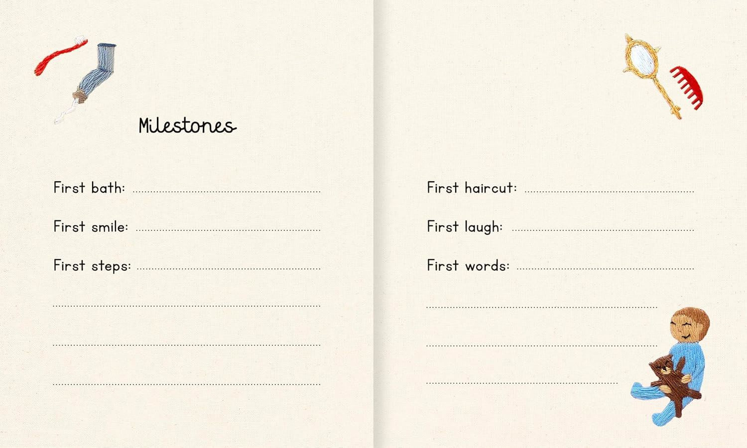 Cherish baby’s various firsts, with little boxes for first teeth, first curl, hospital band and other tiny treasures, and a cloth bag for that first pair of shoes.