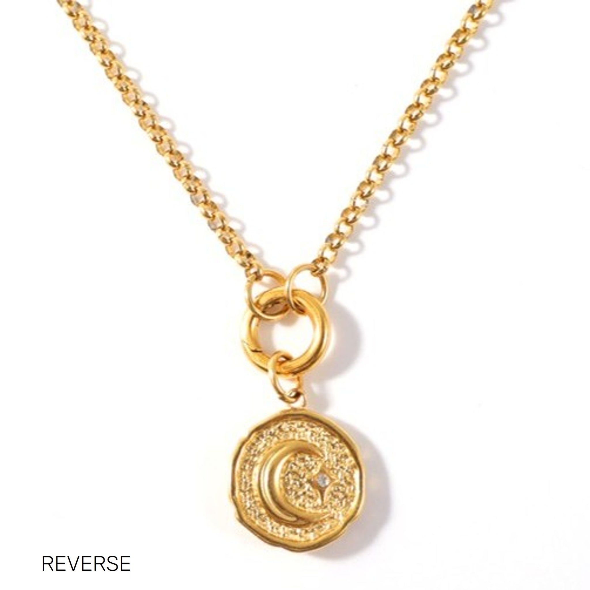 Two sides. One story. This gorgeous necklace is a little piece of everyday magic, a celestial pendant that shifts with your mood, energy, and intention. One side shines with a radiant sunburst; the other holds the soft strength of a crescent moon. It’s a subtle reminder to honour every version of yourself, light and shadow alike.