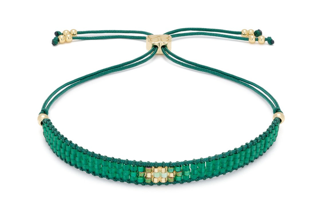 Material: 12k gold-plated brass accents; Japanese Miyuki beads (emerald, mint and gold)