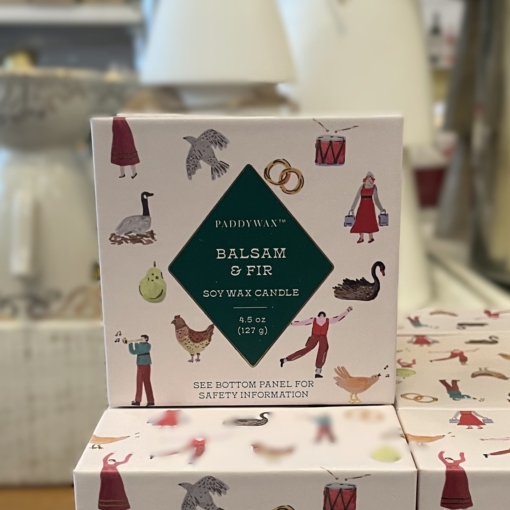 Hand illustrated artwork inspired by the classic 12 Days of Christmas adorns the packaging.