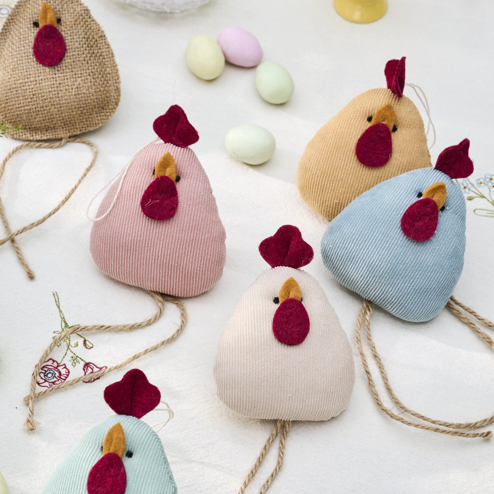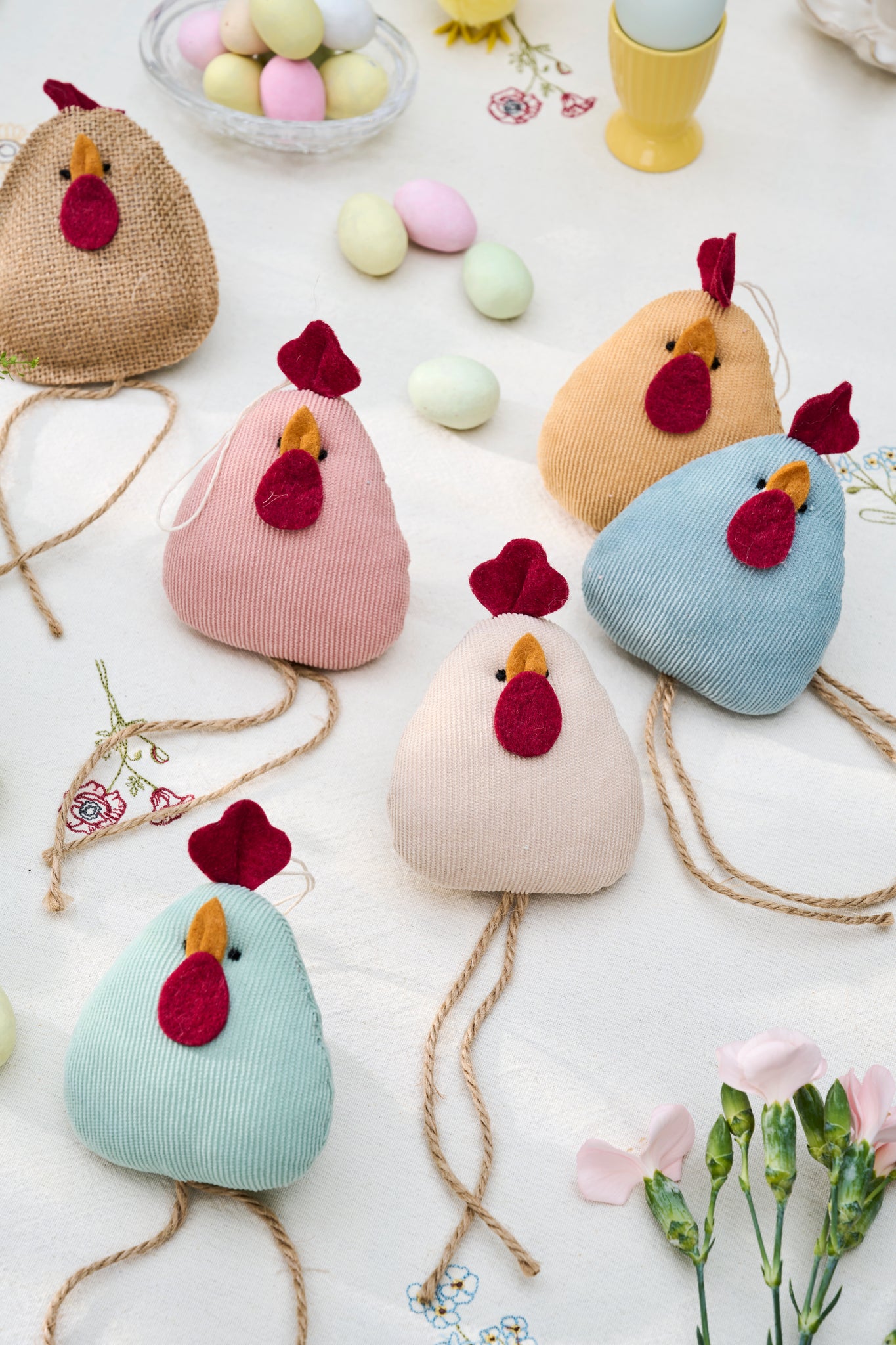 Soft fabric hens in lovely spring colours, perfect for hanging on branches, using in Easter displays, or as a sweet little extra among the treats in an Easter egg.