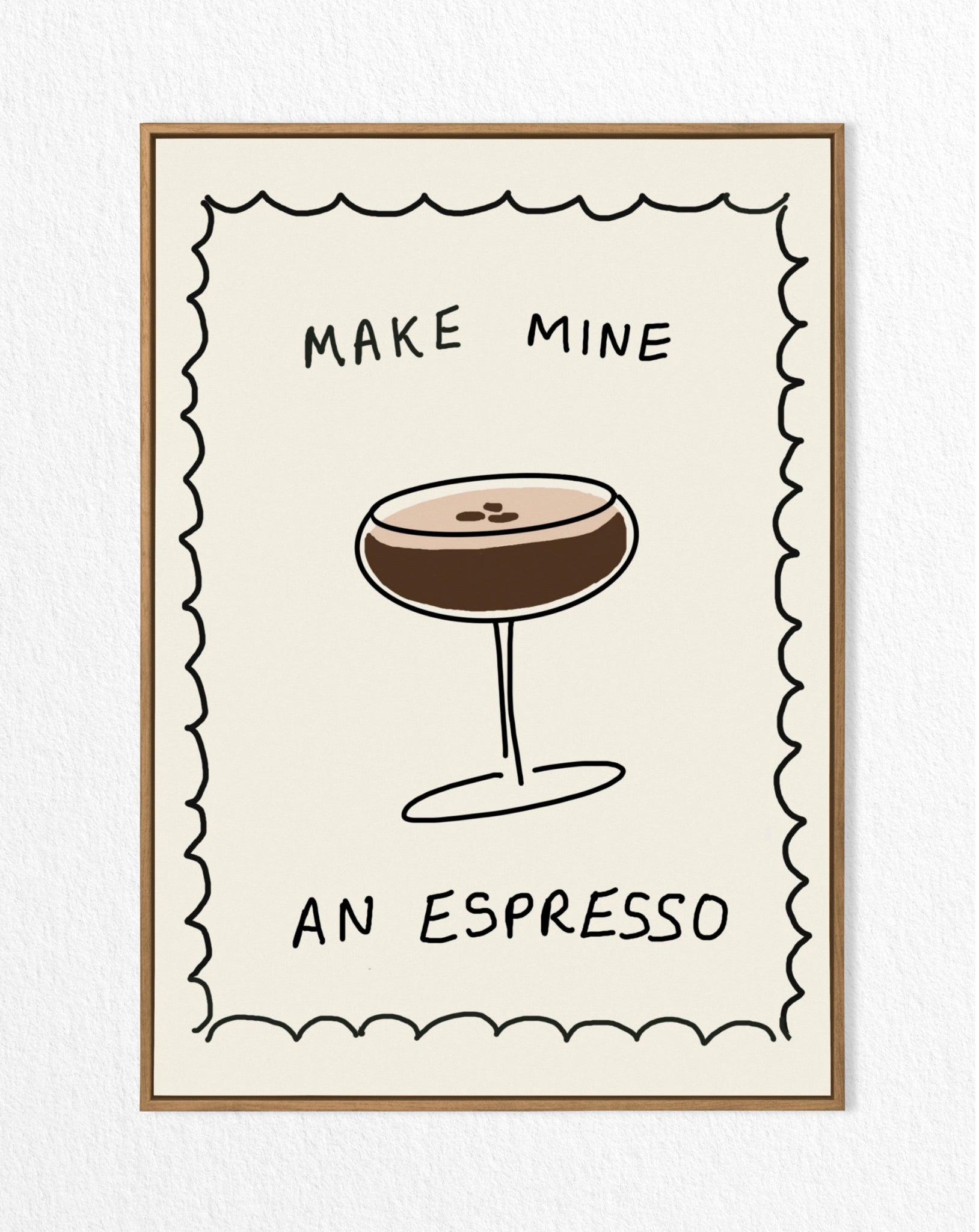 Shaken, not stirred, and with a generous hit of caffeine. This print is a playful nod to the cocktail that’s classy, bold, and always up for a good night out.