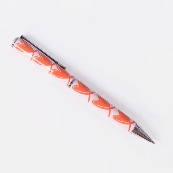 Liven up your note-taking with this pink linked hearts print boxed pen.