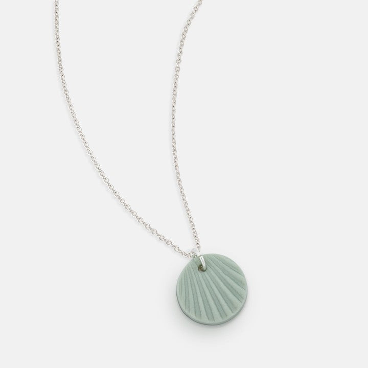 The porcelain discs are made via an intricate process where a textured scallop shell finish is added to the disc before the the final firing.