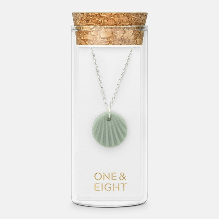 This terracotta scallop necklace is beautifully packaged in a glass bottle, perfect for a gift or a treat for yourself.