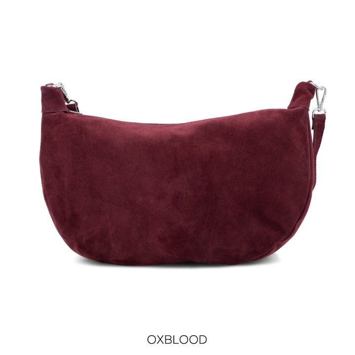This stylish yet practical suede leather handbag can be worn on the shoulder or crossbody.