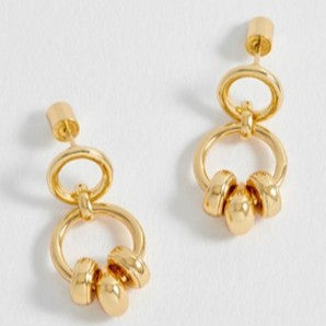 These earrings feature graduating circles, with the added textural detail of teardrop and rondelle beads.  Their modern design will effortlessly enhance any outfit.