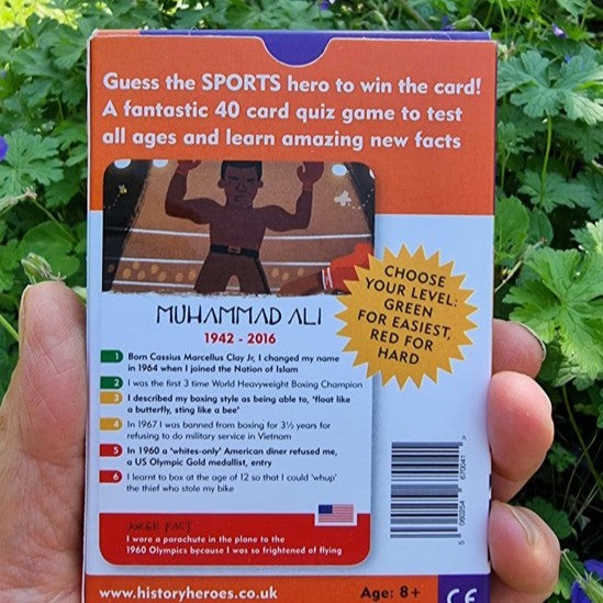 Each card is fantastically illustrated to represent the individual sportsperson and shows their dates, their flag of birthplace and seven gripping facts about them, including a joker fact about each sports hero to surprise and/or entertain